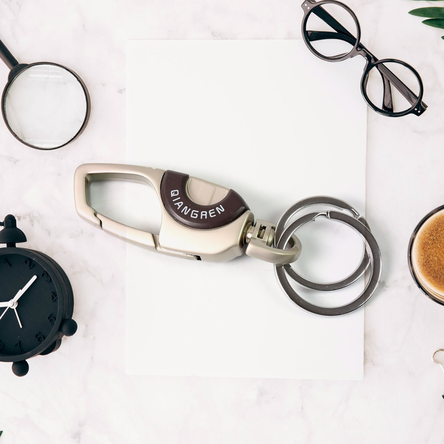 - Keychain with double Key Rings for keeping office keys separate and home keys separate
