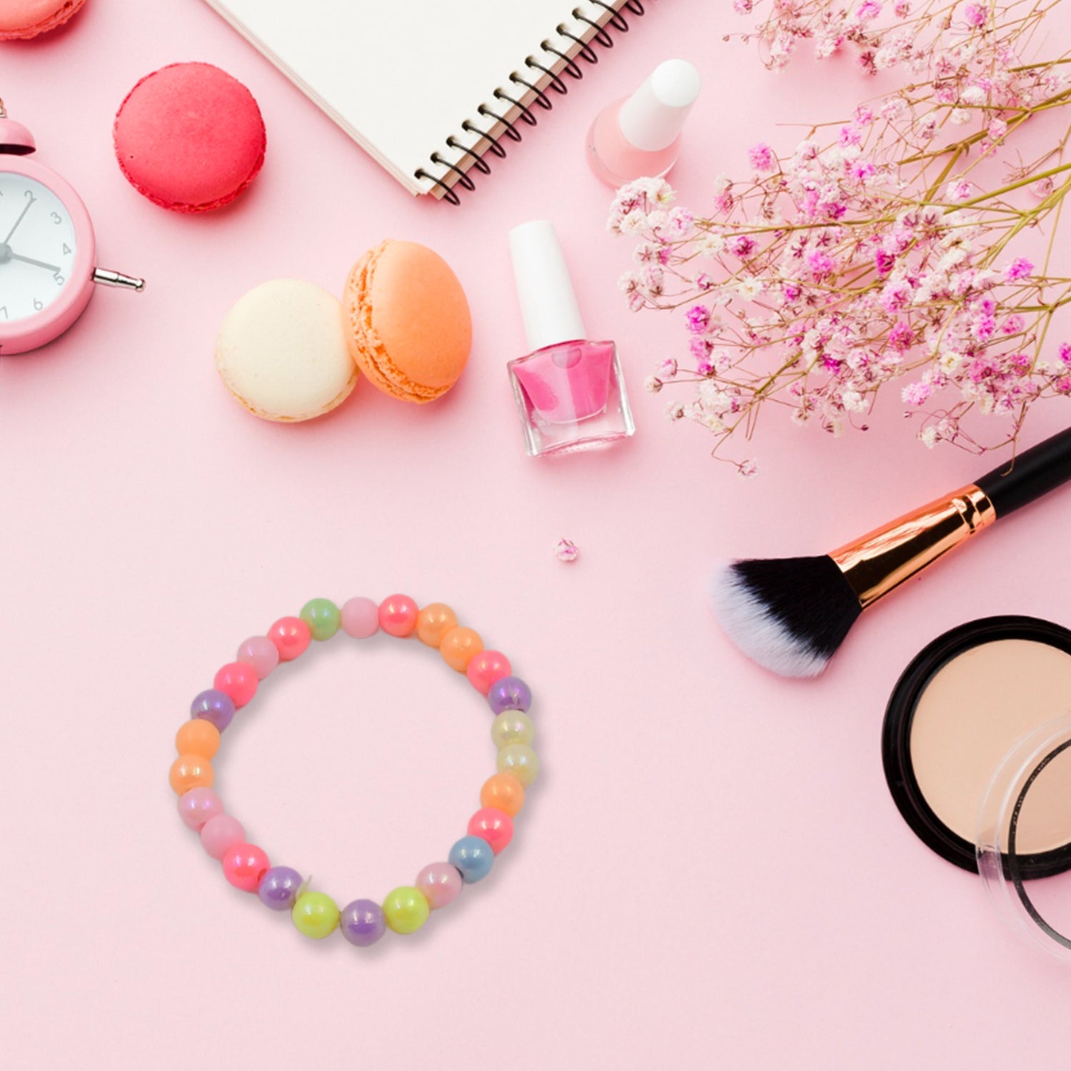Pearl Pendant Necklace Bracelet Ring Combo Set | Kids Necklace Combo Set Enamel Jewellery Set For Girls, Baby, and Toddlers (2 Pc Set)