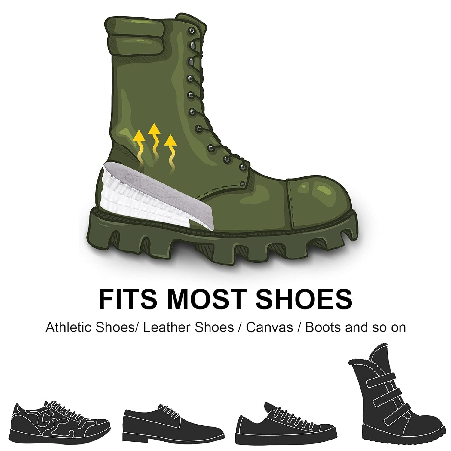 - Application: these heightening insoles are suitable for men and women, suitable for all types of shoes, such as running shoes, formal shoes, boots, sports shoes, work shoes, leather shoes, etc., it will be a great product to help you secretly increase your height