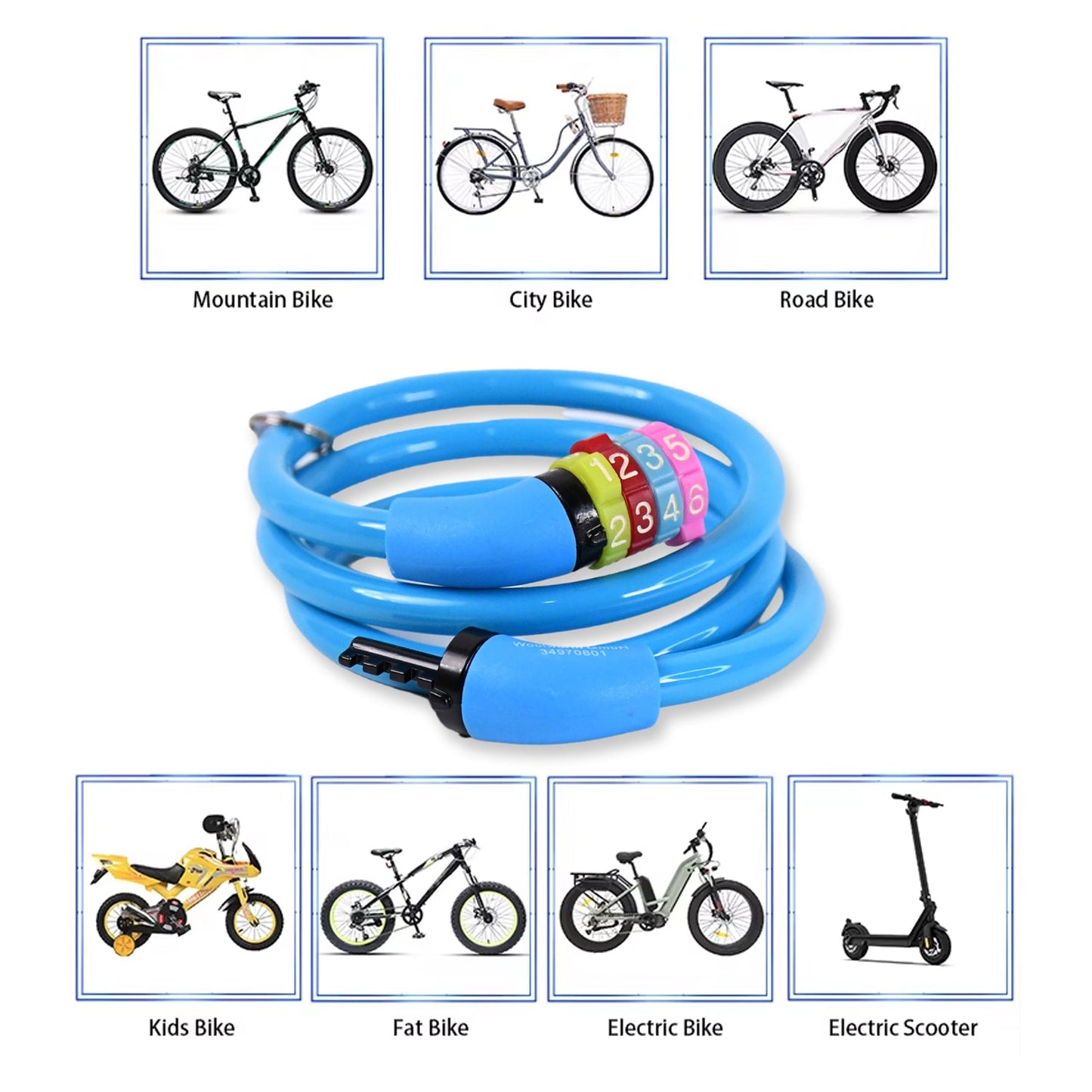 Bike Lock Cable Resettable Cable Lock - Self Coiling 4 Digit Combination Bike Lock